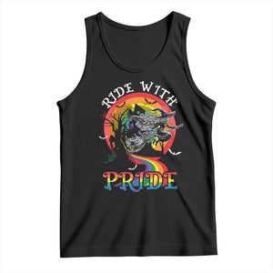 Funny Halloween LGBT Tank Top Ride With Pride Witch Rainbow Spooky And Pride