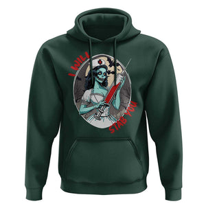 Placeholder Funny Halloween Nurse Hoodie I Will Stab You Scary Zombie Needle Nurse - PrintYourWear - Print Your Wear