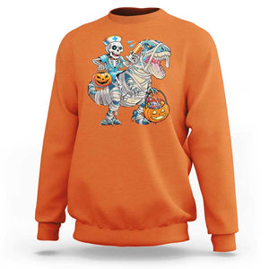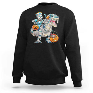 Funny Halloween Nurse Sweatshirt Skeleton Nurse Riding Mummy Dinosaur Pumpkin Candy