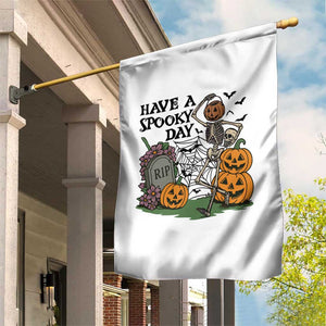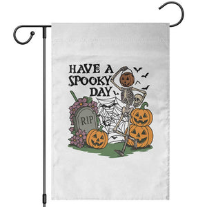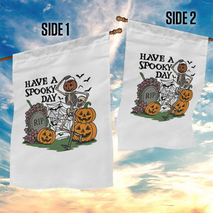 Add a Vibrant Touch to Your Outdoor Space – Funny Halloween Skeleton Garden Flag Have A Spooky Day by Print Your Wear