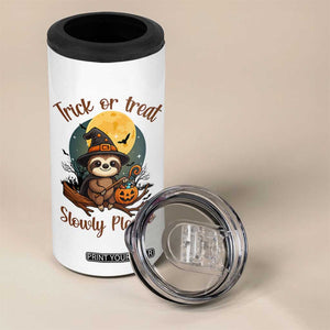Placeholder Funny Halloween Sloth 4 in 1 Can Cooler Tumbler Trick Or Treat Slowly Please - PrintYourWear - Print Your Wear