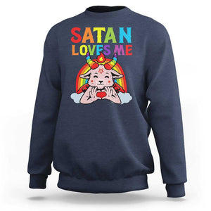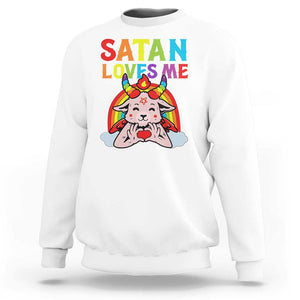 Funny Halloween Sweatshirt Satan Loves Me Rainbow Goat