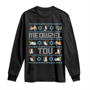 Funny Hanukkah Cats Long Sleeve Shirt Meowzel Tov Chanukah Menorah David Stars