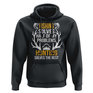 Funny Hunting Hoodie Fishing Solves Half Of Problems Hunting Solves The Rest