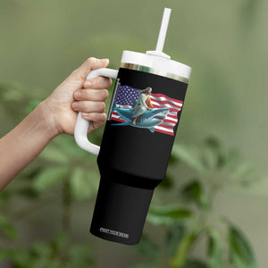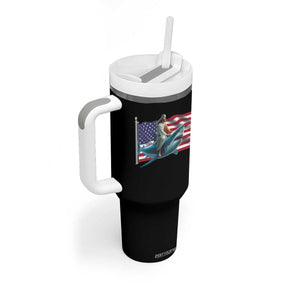 Funny Jesus Shark Tumbler With Handle Christian Patriotic American Flag Meme