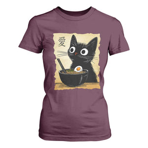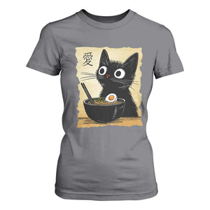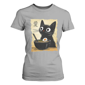 Funny Kawaii Cat Ramen T Shirt For Women Japanese Noodles Lover Anime Otaku Manga Retro TS02