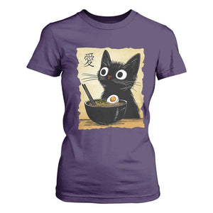 Funny Kawaii Cat Ramen T Shirt For Women Japanese Noodles Lover Anime Otaku Manga Retro