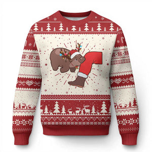 Funny Moo-Deng Christmas Ugly Christmas Sweater MooDengMas Xmas Baby Pygmy Hippo Cute Zoo For Family Tee TS10