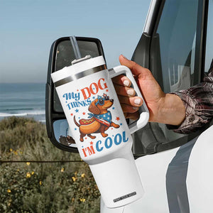 Funny Patriotic Dachshund Tumbler With Handle My Dog Thinks I Am Cool USA Dog Lover TS14