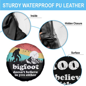 Elevate your vehicle's style and protect your spare tire simultaneously. Order your custom "Bigfoot Doesn’t Believe in You Either" Spare Tire Cover today and make a statement wherever you go.