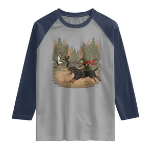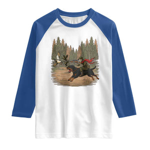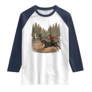 Stay Cool and Stylish with Our Funny Skeleton Hunting Raglan Shirt!