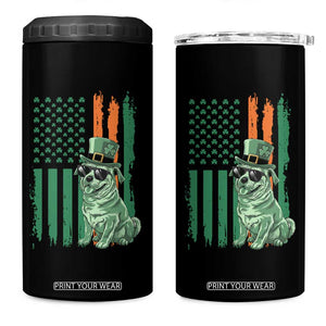 Funny St Patrick's Day Pug Leprechaun 4 in 1 Can Cooler Tumbler Dog Lover Puppy Green American Flag