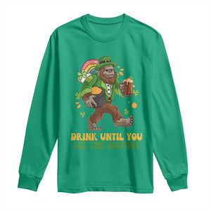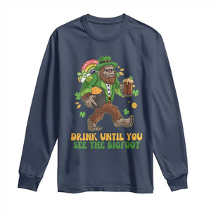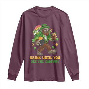 Funny St Patricks Sasquatch Long Sleeve Shirt Drink Until You See The Bigfoot Drinking Squad
