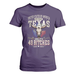 Ready to turn heads and spark conversations? Order your "You Mean Texas And It's 49 Bitches" women's T-shirt today and wear your Texan pride with confidence.