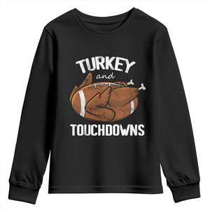 Placeholder Funny Thanksgiving Youth Sweatshirt Turkey and Touchdowns Football Season - PrintYourWear - Print Your Wear