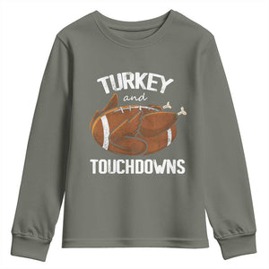 Funny Thanksgiving Youth Sweatshirt Turkey and Touchdowns Football Season TS10