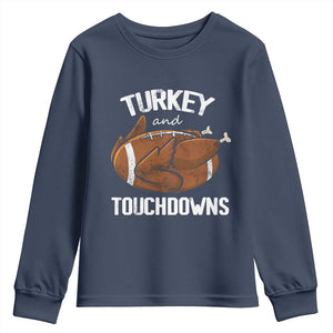 Funny Thanksgiving Youth Sweatshirt Turkey and Touchdowns Football Season