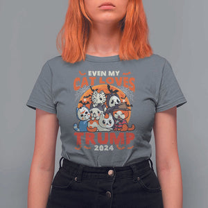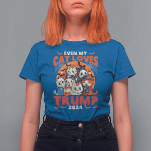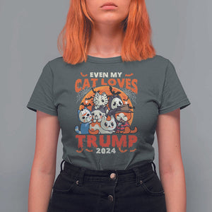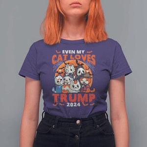 Funny Trump Halloween T Shirt For Women Even My Cat Loves Trump 2024 Bat Moon Murderer