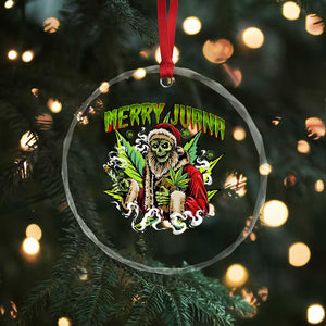 Placeholder Funny Weed Xmas Crystal Glass Ornament Merry Juana Santa Skeleton 420 - PrintYourWear - Print Your Wear