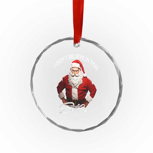 Funny Xmas Crystal Glass Ornament I Don't Believe In You Either Angry Santa