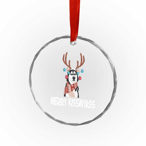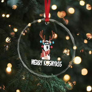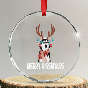 Funny Xmas Husky Crystal Glass Ornament Merry Kissmyasss Husky Reindeer Dog Lover