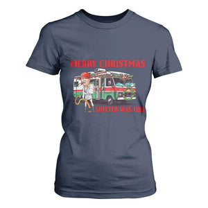 Funny Xmas Movie Trump T Shirt For Women Merry Christmas Shitter Was Full