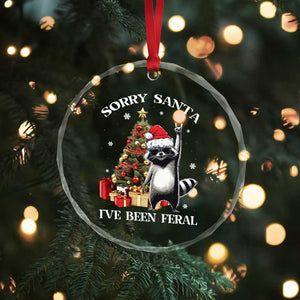 Funny Xmas Racoon Crystal Glass Ornament Sorry Santa I've Been Feral Xmas Hat