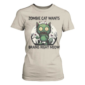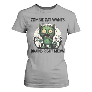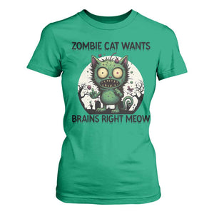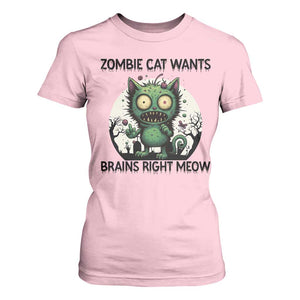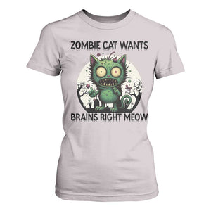 Funny Zombie Cat Wants Brains Right Meow T Shirt For Women Halloween Zombie Kitten
