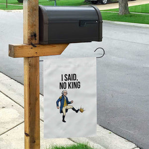Add a Vibrant Touch to Your Outdoor Space – George Washington Kicking Crown Garden Flag Funny No Kings Meme Gift by Print Your Wear