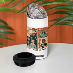 Placeholder Girls Will Be Girls 4 in 1 Can Cooler Tumbler Patriotic Feminist USA Women - PrintYourWear - Print Your Wear