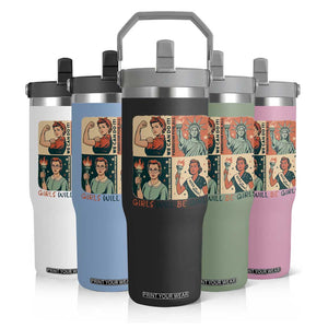 Placeholder Girls Will Be Girls Flip Straw Tumbler Patriotic Feminist USA Women - PrintYourWear - Print Your Wear