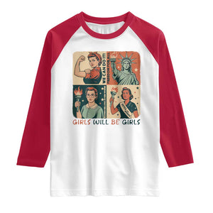 Girls Will Be Girls Raglan Shirt Patriotic Feminist USA Women