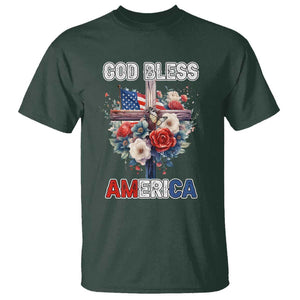Placeholder God Bless America T Shirt US Flag Christian Cross Religious Faith - PrintYourWear - Print Your Wear