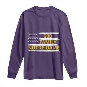 God Family Notre Dame Long Sleeve Shirt Indiana Fighting Irish Patriotic American Flag
