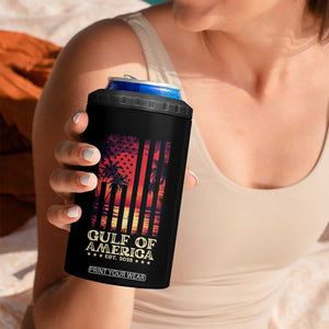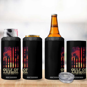 Gulf Of USA Est 2025 4 in 1 Can Cooler Tumbler Sunset American Flag Gulf Mexico