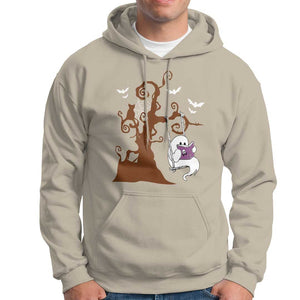 Placeholder Halloween Bookaholic Hoodie Cute Ghost Swing Reading Book - PrintYourWear - Print Your Wear