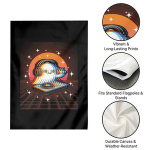 Add a Vibrant Touch to Your Outdoor Space – Halloween Ghost Garden Flag Funny Trippy Vaporwave DJ Music Party by Print Your Wear