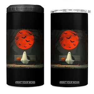 Halloween Lonely Ghost Bench Blood Moon Pumpkin 4 in 1 Can Cooler Tumbler