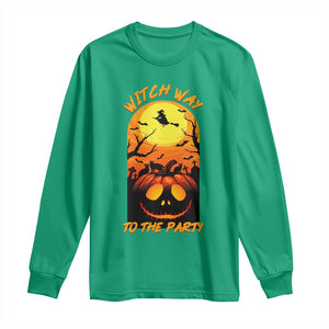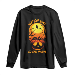 Halloween Witch Way To The Party Long Sleeve Shirt Black Cat Pumpkin