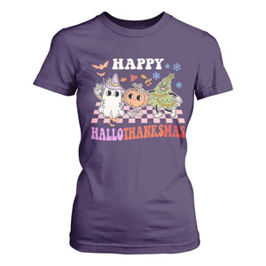 Placeholder Happy HalloThanksMas T Shirt For Women Halloween Thanksgiving Christmas Retro Groovy Cute - PrintYourWear - Print Your Wear
