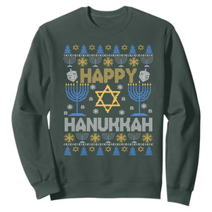 Happy Hanukkah Sweatshirt Jewish Festival of Lights Hanukkiah Menorah Ugly Chanukah