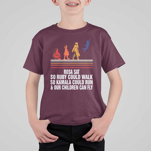 Inspire the next generation with our Harris 2024 Kids T-Shirt, featuring the powerful message: “Rosa sat so Ruby could walk, so Kamala could run, and our children can fly.” A meaningful statement for young leaders, this shirt celebrates Black history, progress, and the power of dreams.