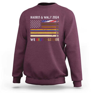Harris Walz 2024 Sweatshirt We Rise Together Vintage American Flag