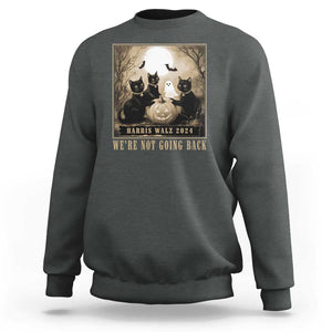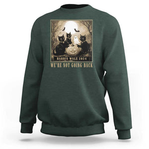 Harris Walz 2024 Sweatshirt We're Not Going Back Black Cat For Kamala Pumpkin Moon