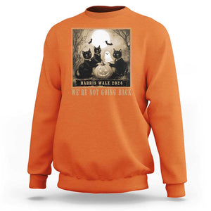 Harris Walz 2024 Sweatshirt We're Not Going Back Black Cat For Kamala Pumpkin Moon TS11