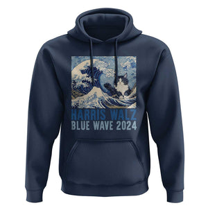 Harris Walz Blue Wave 2024 Hoodie Cat Ladies Kamala Funny Cats Wave