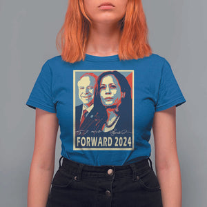 Harris Walz T Shirt For Women Forward 2024 Not Going Back Signature Portraits TS11