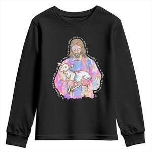 Placeholder He Is Risen Youth Sweatshirt Christian Religious Easter Day Bible Verse Sheep Glitter Print - PrintYourWear - Print Your Wear