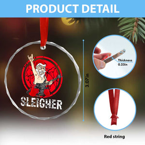 Heavy Mental Crystal Glass Ornament Sleigher Santa Playing Guitar