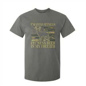 Placeholder Hunting T Shirt For Kid I'm Into Fitness Fit'ness Deer In My Freezer Camo Flag - PrintYourWear - Print Your Wear